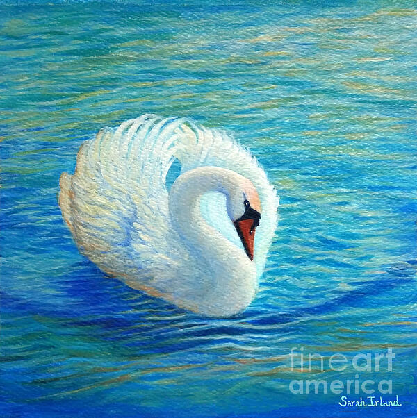 Swans are my favorite water bird. In this painting, a Mute Swan with raised wings begins a dance across the water. Mute swans often swim with their... more
